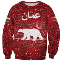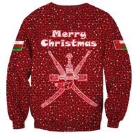 Oman Christmas Sweatshirt with Red Geometric Design, White Oryx, and National Emblem Motif
