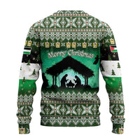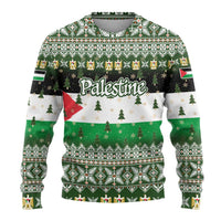 Palestine Christmas Ugly Christmas Sweater with Green-White Theme, Tree Ornaments, and Nativity Scene Motif TS04