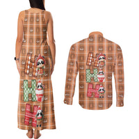 Panda Christmas Couples Matching Tank Maxi Dress and Long Sleeve Button Shirt Ho Ho Ho Caramel Pattern