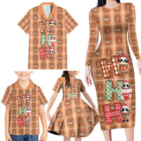 Panda Christmas Family Matching Long Sleeve Bodycon Dress and Hawaiian Shirt Ho Ho Ho Caramel Pattern
