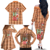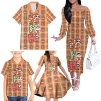 Panda Christmas Family Matching Off The Shoulder Long Sleeve Dress and Hawaiian Shirt Ho Ho Ho Caramel Pattern DT05