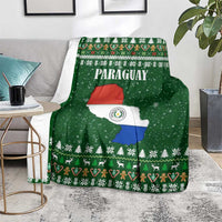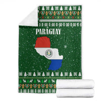 Paraguay Christmas Blanket with Green Festive Pattern, Map and Flag Motif, and Santa Illustration