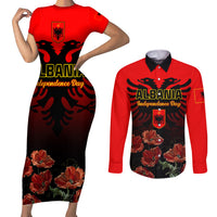 Personalised Albania Independence Day Couples Matching Short Sleeve Bodycon Dress and Long Sleeve Button Shirt Albanian Coat Of Arms With Red Poppy Flower LT01