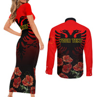 Personalised Albania Independence Day Couples Matching Short Sleeve Bodycon Dress and Long Sleeve Button Shirt Albanian Coat Of Arms With Red Poppy Flower