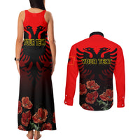 Personalised Albania Independence Day Couples Matching Tank Maxi Dress and Long Sleeve Button Shirt Albanian Coat Of Arms With Red Poppy Flower