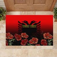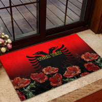 Personalised Albania Independence Day Rubber Doormat Albanian Coat Of Arms With Red Poppy Flower LT01