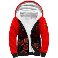 Personalised Albania Independence Day Sherpa Hoodie Albanian Coat Of Arms With Red Poppy Flower LT01