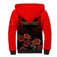 Personalised Albania Independence Day Sherpa Hoodie Albanian Coat Of Arms With Red Poppy Flower