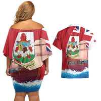Personalised Bermuda Couples Matching Off Shoulder Short Dress and Hawaiian Shirt Quo Fata Ferunt