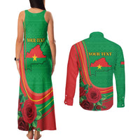Personalised Burkina Faso Independence Day Couples Matching Tank Maxi Dress and Long Sleeve Button Shirt Coat Of Arms With Rose