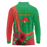 Personalised Burkina Faso Independence Day Long Sleeve Polo Shirt Coat Of Arms With Rose