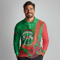 Personalised Burkina Faso Independence Day Long Sleeve Polo Shirt Coat Of Arms With Rose LT15