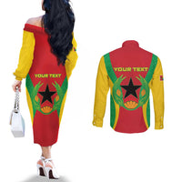 Personalised Cape Verde Couples Matching Off The Shoulder Long Sleeve Dress and Long Sleeve Button Shirt National Flag Of Cape Verde 1975-1992