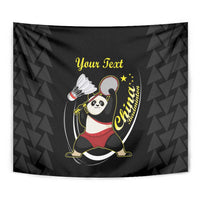 Personalised China Badminton Tapestry 2024 Chinese Cute Panda Black Version