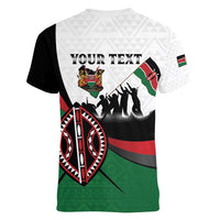 Personalised Happy Kenya Madaraka Day Women V-Neck T-Shirt Maasai Shield - Kenyan Pattern