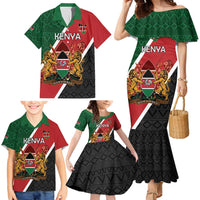 Personalised Kenya Family Matching Mermaid Dress and Hawaiian Shirt Coat Of Arms Mix Flag Style