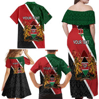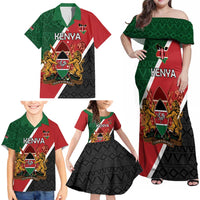 Personalised Kenya Family Matching Off Shoulder Maxi Dress and Hawaiian Shirt Coat Of Arms Mix Flag Style LT15