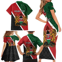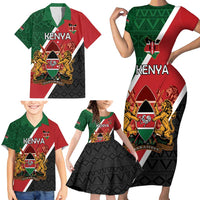 Personalised Kenya Family Matching Short Sleeve Bodycon Dress and Hawaiian Shirt Coat Of Arms Mix Flag Style