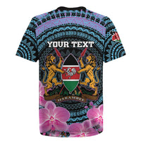 Personalised Kenya Lilac Breasted Roller Rugby Jersey Mix Maasai Shield With Orchid Flower