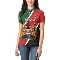Personalised Kenya Women Polo Shirt Coat Of Arms Mix Flag Style