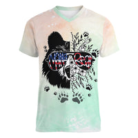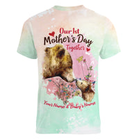 Personalised Mama Bear US Flag First Mother's Day Together Women V Neck T Shirt TS07