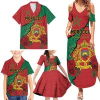 Personalised Morocco Family Matching Summer Maxi Dress and Hawaiian Shirt Coat Of Arms With Rose