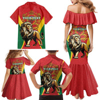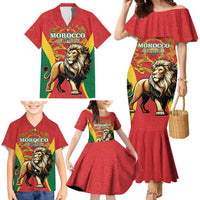 Personalised Morocco Proclamation Day Family Matching Mermaid Dress and Hawaiian Shirt Barbary Lion Mix Islamic Pattern