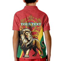 Personalised Morocco Proclamation Day Kid Polo Shirt Barbary Lion Mix Islamic Pattern