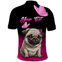 Personalised Pink Out Polo Shirt Pug Dog Breast Cancer Awareness