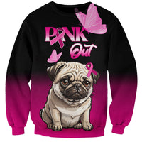 Personalised Pink Out Sweatshirt Pug Dog Breast Cancer Awareness
