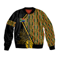 Personalised South African Heritage Day Bomber Jacket Kente Ethnic Patterns Mix Protea