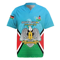 Personalised South Sudan Independence Day Rugby Jersey Coat Of Arms With Flag Map