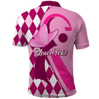 Personalised Think Pink Polo Shirt Golf Argyle Pattern Breast Cancer Awareness