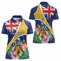 Personalised Turks And Caicos Islands Women Polo Shirt Coat Of Arms Tropical Flower LT15