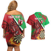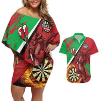 Personalised Wales Darts Couples Matching Off Shoulder Short Dress and Hawaiian Shirt Welsh Dragon - Grunge Style