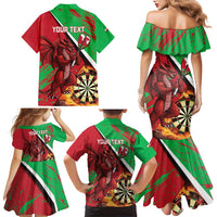 Personalised Wales Darts Family Matching Mermaid Dress and Hawaiian Shirt Welsh Dragon - Grunge Style