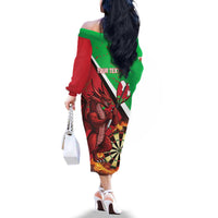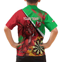 Personalised Wales Darts Family Matching Off The Shoulder Long Sleeve Dress and Hawaiian Shirt Welsh Dragon - Grunge Style
