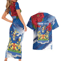 Personalised Windsor Couples Matching Short Sleeve Bodycon Dress and Hawaiian Shirt The City of Roses LT01