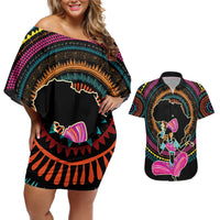 Personalized Africa Couples Matching Off Shoulder Short Dress and Hawaiian Shirt Beautiful Black Woman LT18