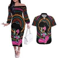 Personalized Africa Couples Matching Off The Shoulder Long Sleeve Dress and Hawaiian Shirt Beautiful Black Woman