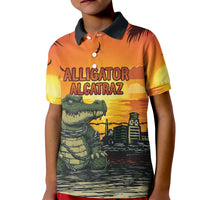 Personalized Alligator Alcatraz Kid Polo Shirt Gator Island Prison Retro Sunset