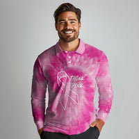 Personalized Breast Cancer Awareness Long Sleeve Polo Shirt Think Pink Tie Dye Ribbon