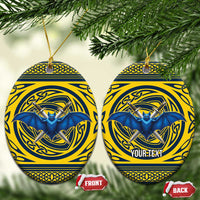 Personalized Brecknockshire Wales Ceramic Ornament Welsh Celtic Bat And Swords Design