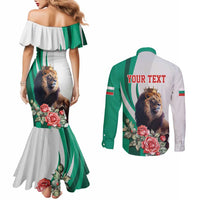Personalized Bulgaria Coat of Arms Couples Matching Mermaid Dress and Long Sleeve Button Shirt A Crowned Golden Lion with Rose