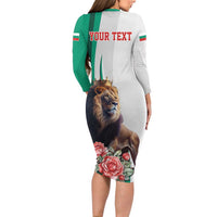 Personalized Bulgaria Coat of Arms Long Sleeve Bodycon Dress A Crowned Golden Lion with Rose