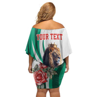 Personalized Bulgaria Coat of Arms Off Shoulder Short Dress A Crowned Golden Lion with Rose