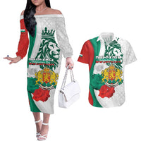 Personalized Bulgaria Independence Day Couples Matching Off The Shoulder Long Sleeve Dress and Hawaiian Shirt Suedinenieto Pravi Silata Folk Pattern LT18