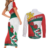 Personalized Bulgaria Unification Day Couples Matching Short Sleeve Bodycon Dress and Long Sleeve Button Shirt Lion Rampant Red Rose