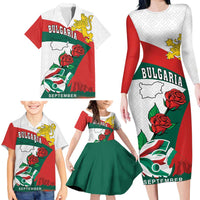 Personalized Bulgaria Unification Day Family Matching Long Sleeve Bodycon Dress and Hawaiian Shirt Lion Rampant Red Rose