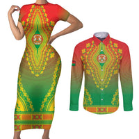 Personalized Burkina Faso African Dashiki Couples Matching Short Sleeve Bodycon Dress and Long Sleeve Button Shirt